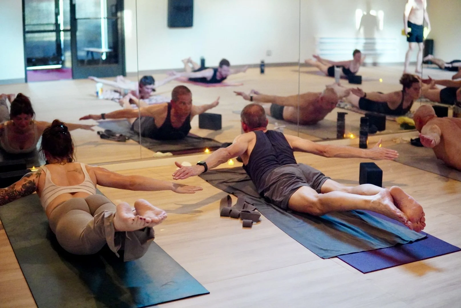 Finding your space for your mat. Please arrive 5-10 minutes early to allow an on-time start for class, and to ensure you have a perfect place for you for your practice